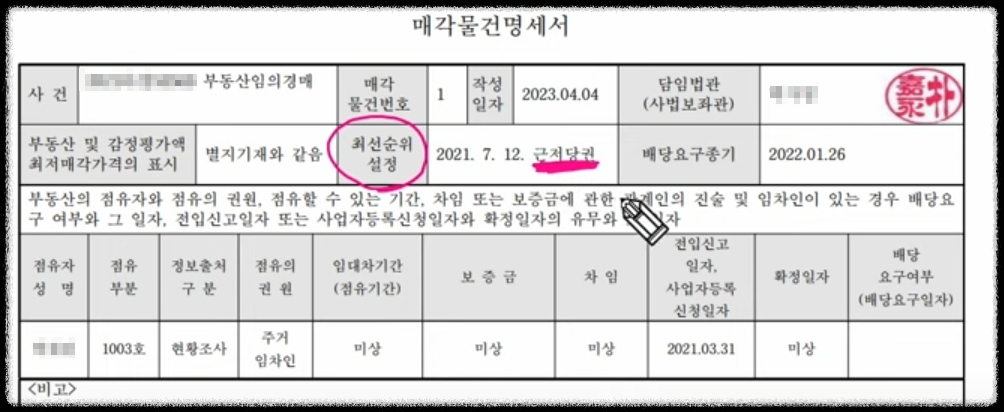 권리분석할때 무엇보다 중요한것이 매각물건명세서이다